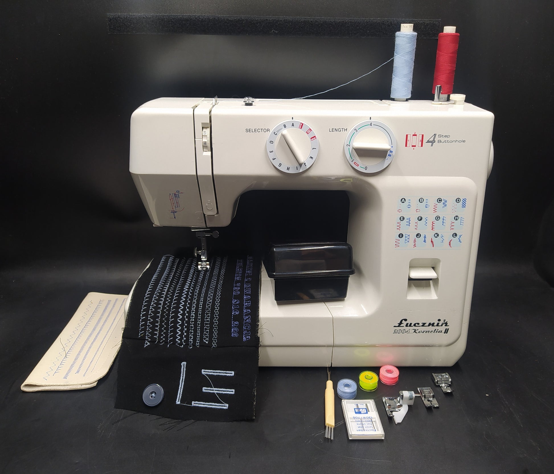 Maszyna do szycia Łucznik Kornelia Maszyna po konserwacji w Specjalistycznym Serwisie Maszyn do szycia-przystosowana do szycia grubszych materiałów za sprawą -Wymiany Ząbków Transportera -przesuwających materiał na grubsze i mocniejsze niż oryginalnie. Świetnie sprawdzi się jako narzędzie nauki szycia dla początkujących oraz do szycia w domowym zaciszu lub w zakładzie krawieckim typu pogotowie krawieckie. Idealna do szycia tkanin delikatnych jak i tych bardziej wymagających typu jeans ,skaj a nawet skóra .Kornelia posiada mnóstwo ściegów z podziałem na zwykłe podstawowe ,elastyczne, ozdobne Konstrukcja maszyny odlana z aluminium zamknietym w obudowie ABS trwałej i odpornej na uszkodzenia oraz promienie słoneczne, Kornelia jest wyjątkowo lekka i łatwa w przenoszeniu dzieki wygodnemu uchwytowi w górnej częsci maszyny, posiada również wbudowany schowek na akcesoria., wolne ramię do szycia rękawów, nogawek, kapeluszy .